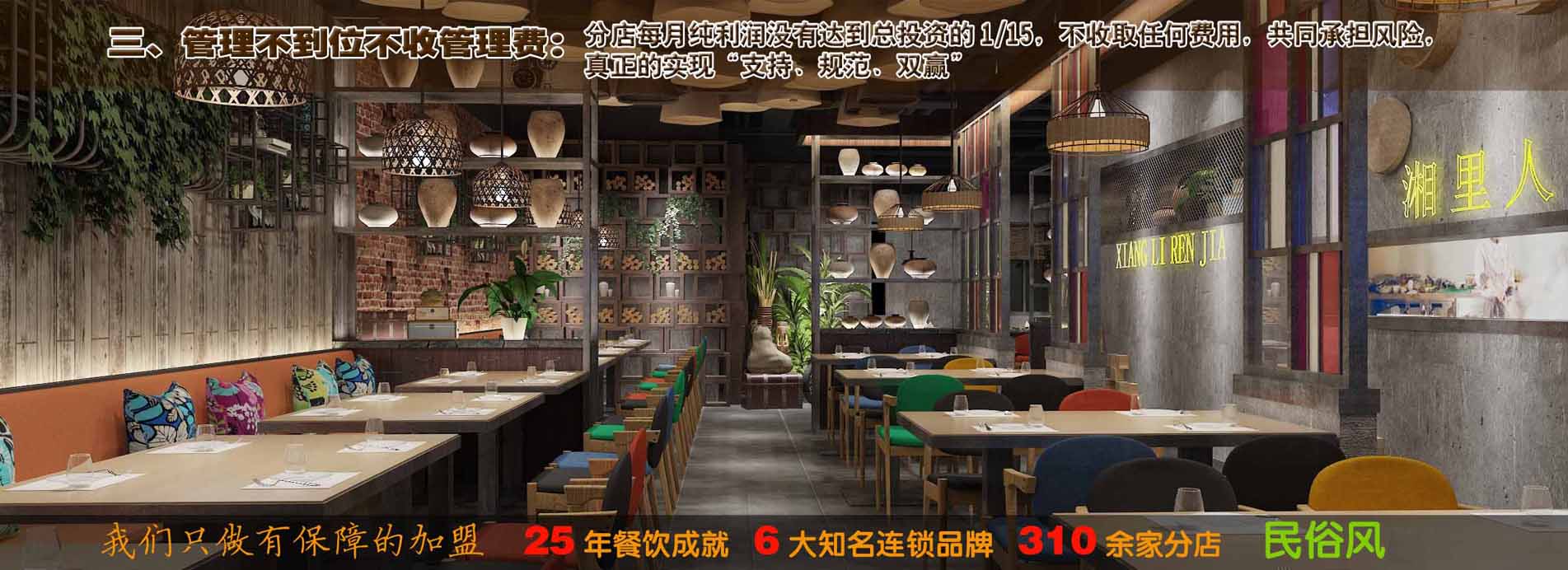 特色湘菜加盟,资深市场专员前期免费上门考察、负责位址筛选、现场平面布局方案、风格讲解/投资预算汇总、营业额预估、运营成本回报周期分析、出项目分析报表、现场加盟细节讲解等咨询工作。
