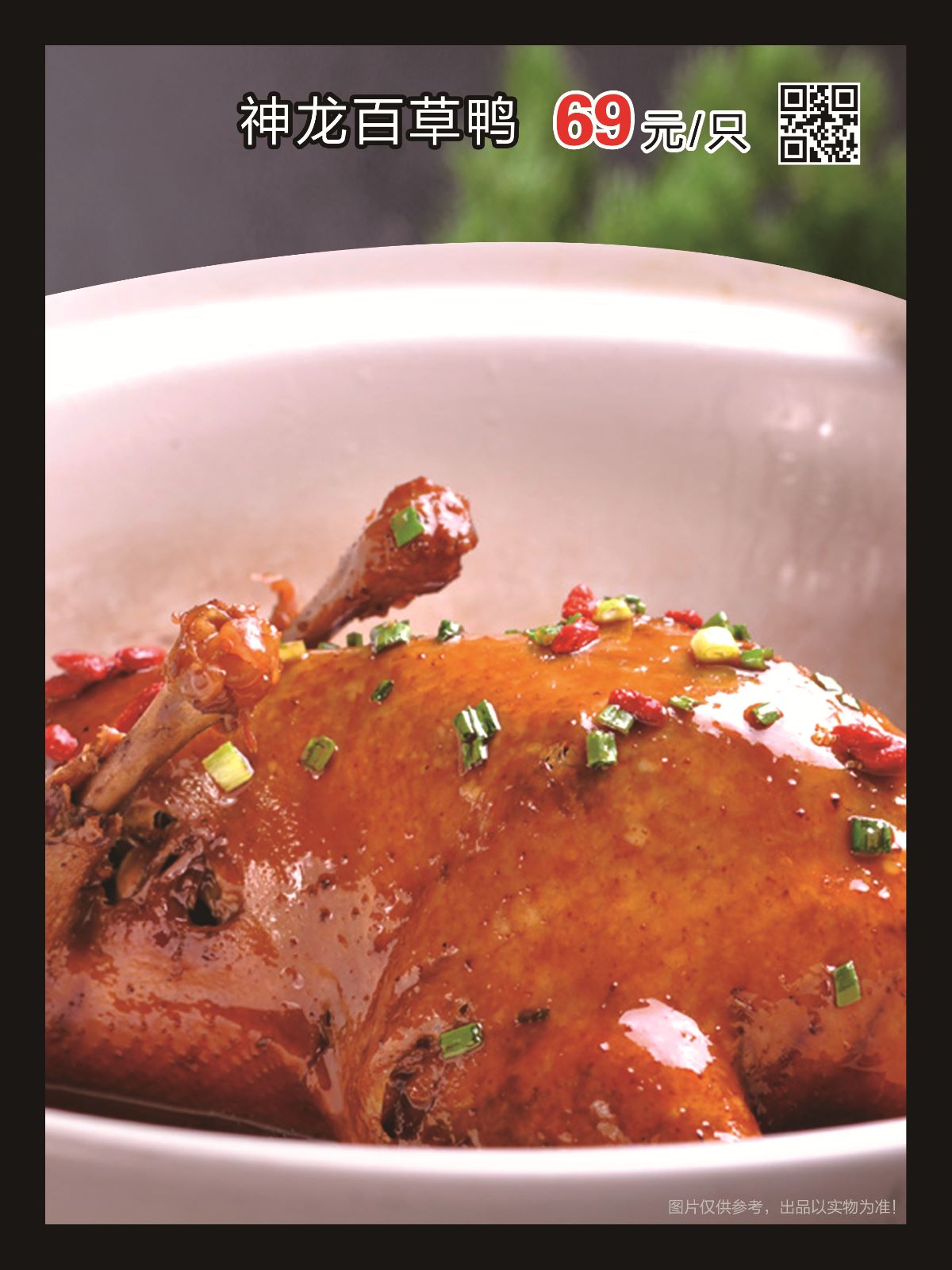 家禽生畜制作方法别致,味道独特,就像它“神龙百草鸭”想想就好呷!