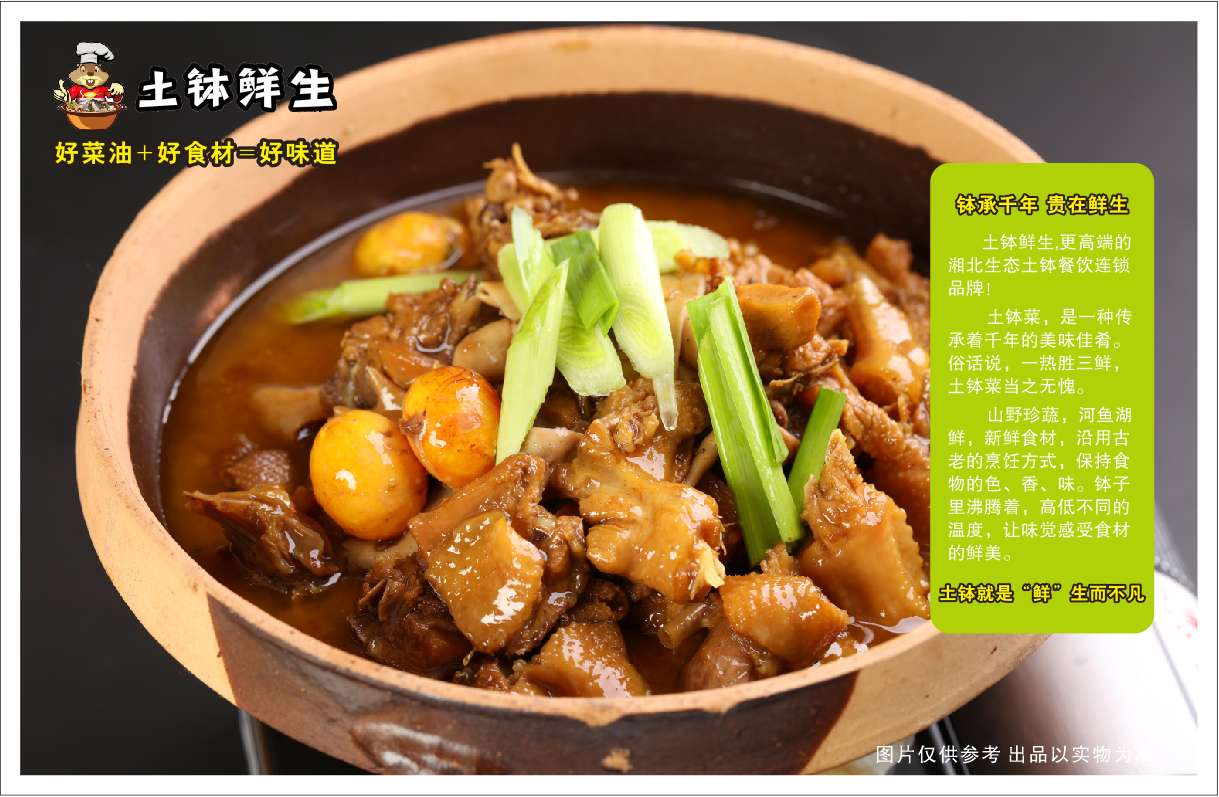 我们始终秉承好原料、做好菜原则,以绿色、健康、生态为基础,回归、挖掘、传承乡土饮食文化为已任,铭记并搜罗被遗忘的味道,回归创新地道湖南口味,以独特产品和贴心的服务来赢取口碑和市场,立志做一家发扬湖南地方特色的土钵菜馆。