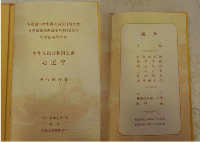 摘要:2015年9月3日的抗战胜利70周年纪念日大会阅兵式结束之后,令人垂涎三尺的的国宴菜单也曝光了,在人民大会堂品尝着这些极具中国特色的美味佳肴,相信大家一定艳羡不已吧。我们可以看