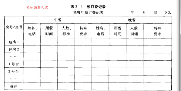 (2)将预订内容记录下来,既是对客人的一种尊重,也是餐厅优质服务的保证。